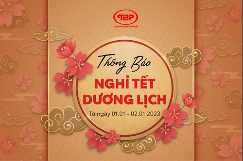 - Nhằm đảm bảo Quý khách hàng luôn luôn chủ động trong kế hoạch mua xe, sửa chữa và bảo dưỡng xe, Toyota Bình Phước trân trọng thông báo lịch nghỉ Tết Dương lịch của Công ty như sau: