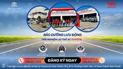TOYOTA BÌNH PHƯỚC TỔ CHỨC BẢO DƯỠNG LƯU ĐỘNG & LÁI THỬ XE TẠI THỊ XÃ CHƠN THÀNH