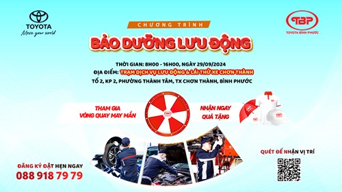 TOYOTA BÌNH PHƯỚC TỔ CHỨC BẢO DƯỠNG & SỬA CHỮA LƯU ĐỘNG TẠI THỊ XÃ CHƠN THÀNH